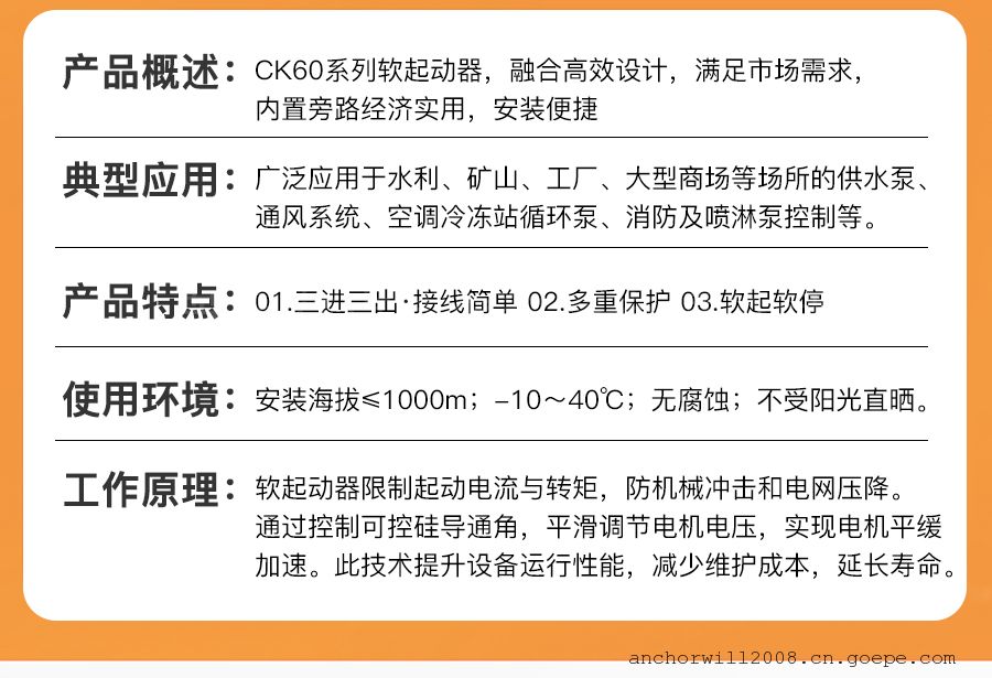 Suzhou Anchorwill Technology Co., Ltd. was established in 2008. It is located in Suzhou City, the most economically active Yangtze River Delta Economic Zone in my country. It has two production bases and a R & D center. The company is committed to independent research and development, and takes it as its mission to improve China's industry, and professionally provides motor drive control systems and industrial Internet of Things systems. The company's main businesses: high-voltage soft starters, low-voltage soft starters, mining soft starters, frequency converters, control cabinets, motor drive control products and solutions, industrial Internet of Things products and solutions, etc. Anchorwill is rooted in the industrial field, integrates technologies such as the Internet of Things, big data, and cloud computing, and participates in the development of smart cities, smart transportation, and smart agriculture. It continues to innovate in the "Internet +" era. It is an innovative national high-tech enterprise with independent intellectual property rights.- Name(chinese)